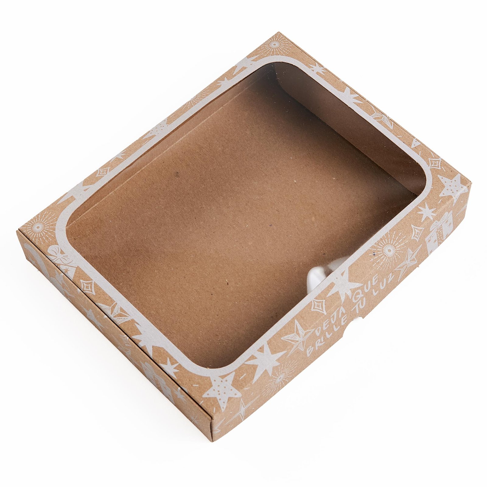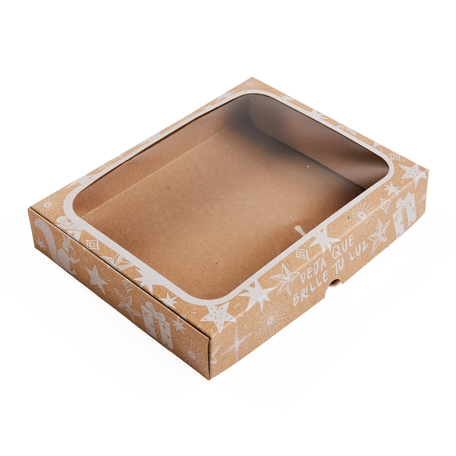 Caja de cartón con ventana de acetato 17,5×13,5x3cm (Navidad Kraft)