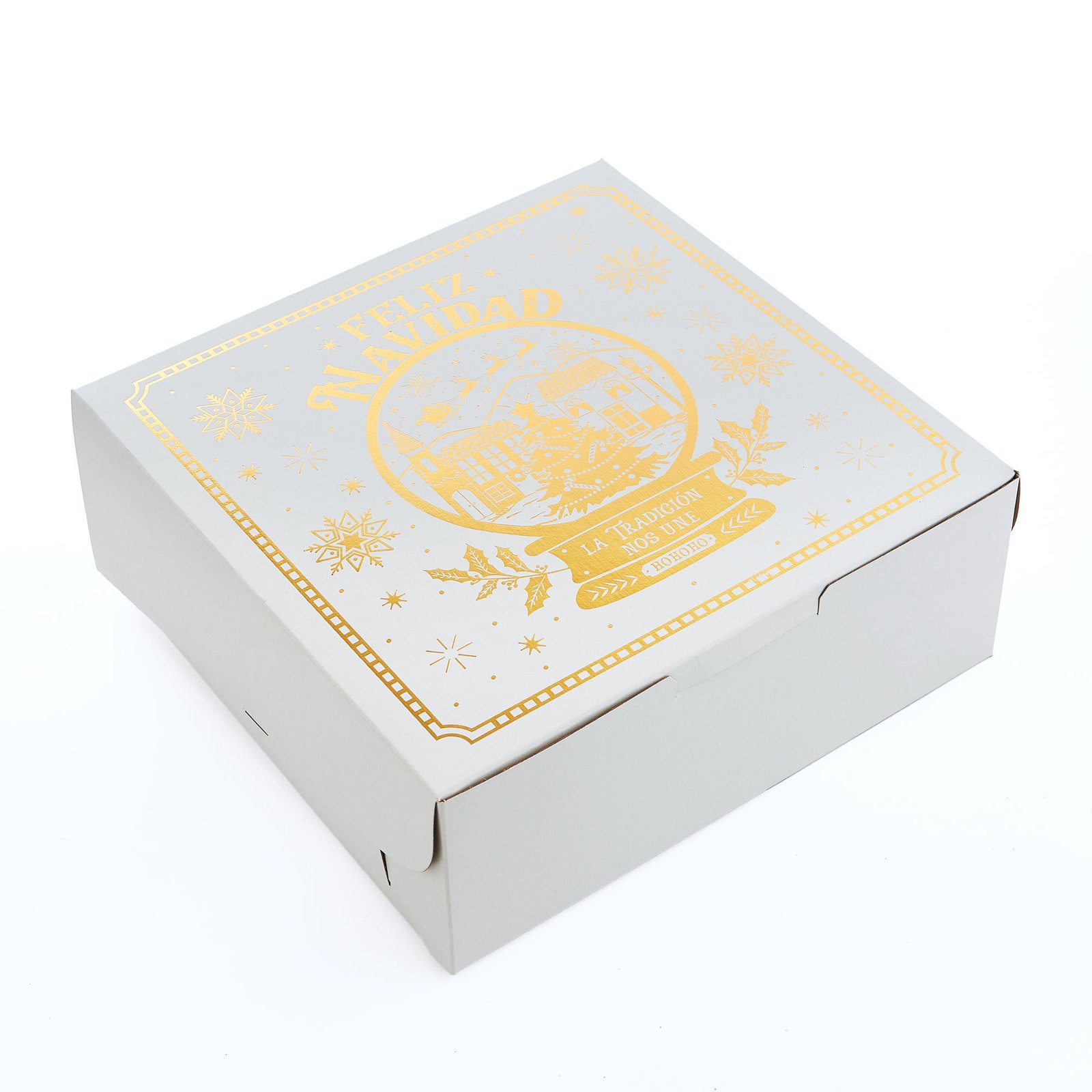 Caja de cartón 25x25x10cm Feliz Navidad Metalizada dorada |