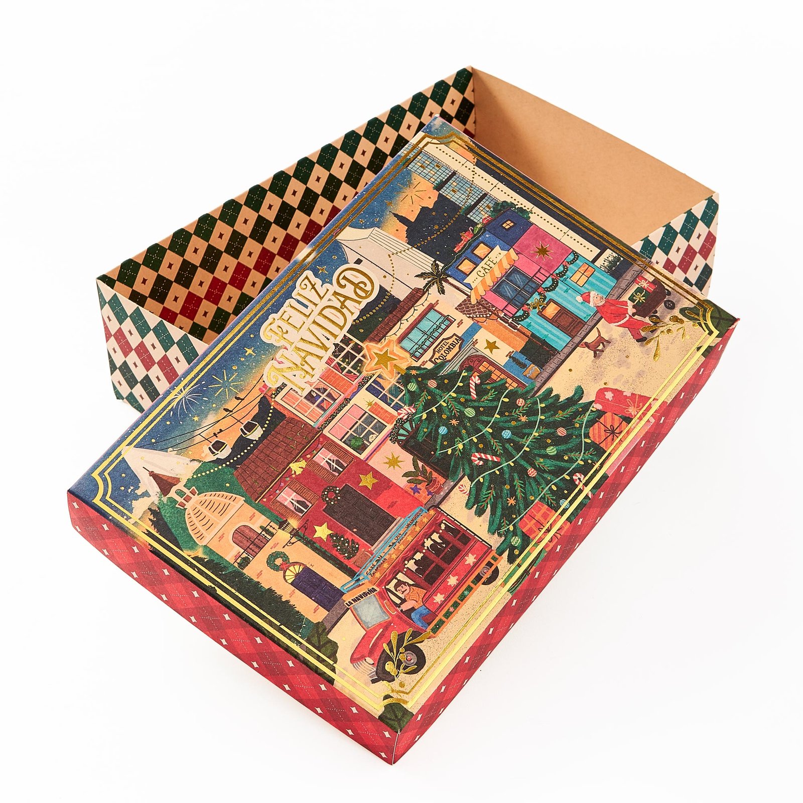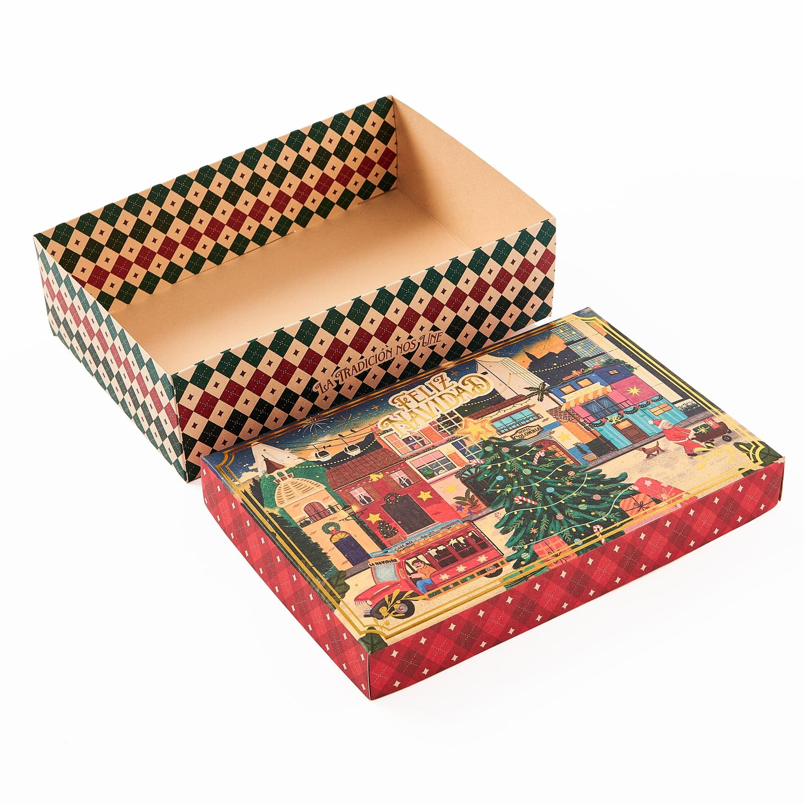 Caja de cartón base y tapa Navidad tradicional 24x16x7cm |