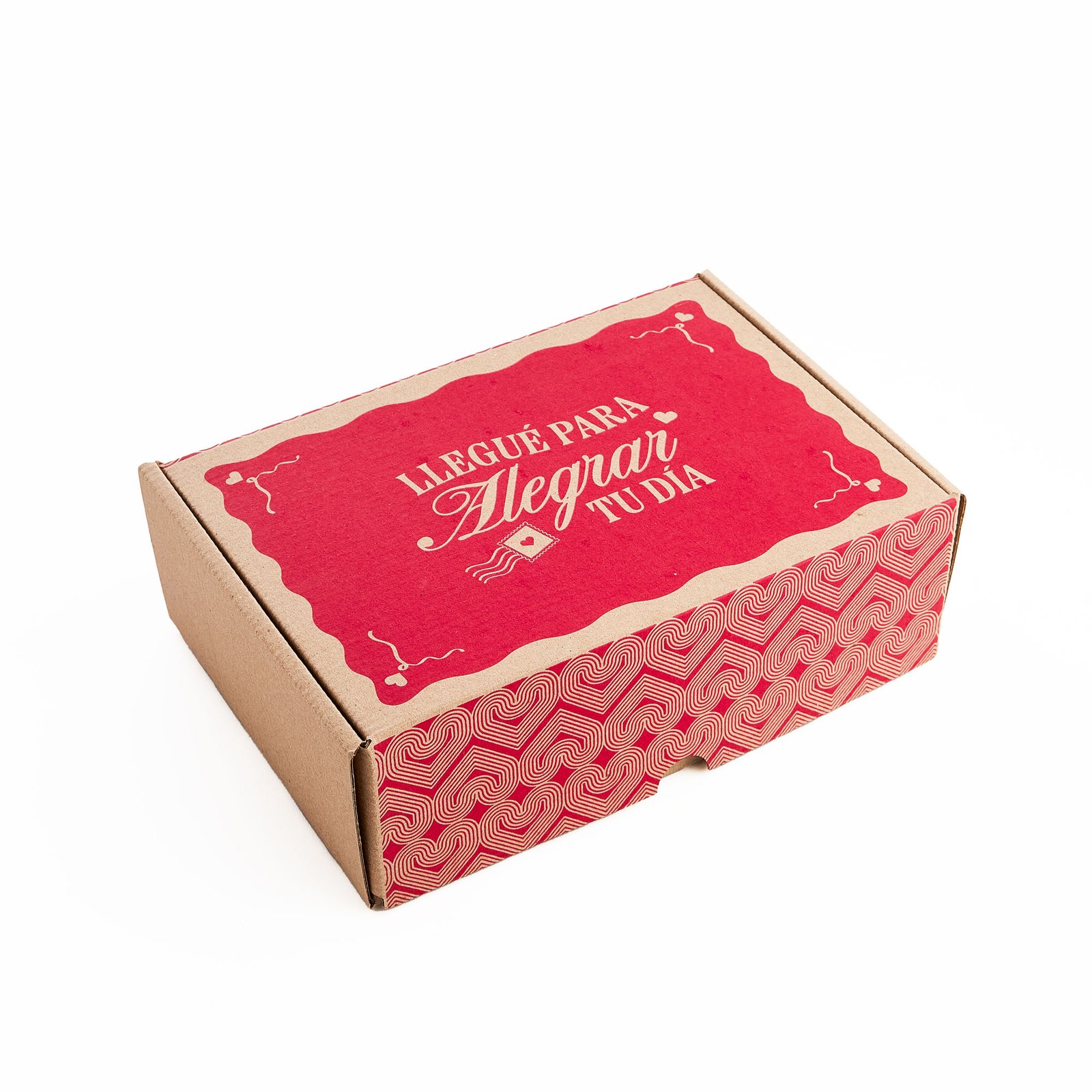 Esta elegante caja de cartón rígido, con las palabras ‘Llegue para Alegrar tu día’ impresas en color Cereza, es el empaque perfecto para tus regalos especiales. Ideal para demostrar cariño y aprecio, su diseño resistente asegura que tus detalles lleguen con estilo y protección.