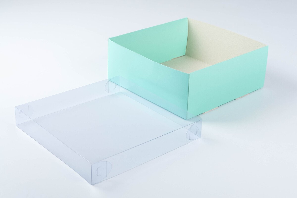 Caja con tapa de acetato – 25x25x10cm- AGUA MARINA